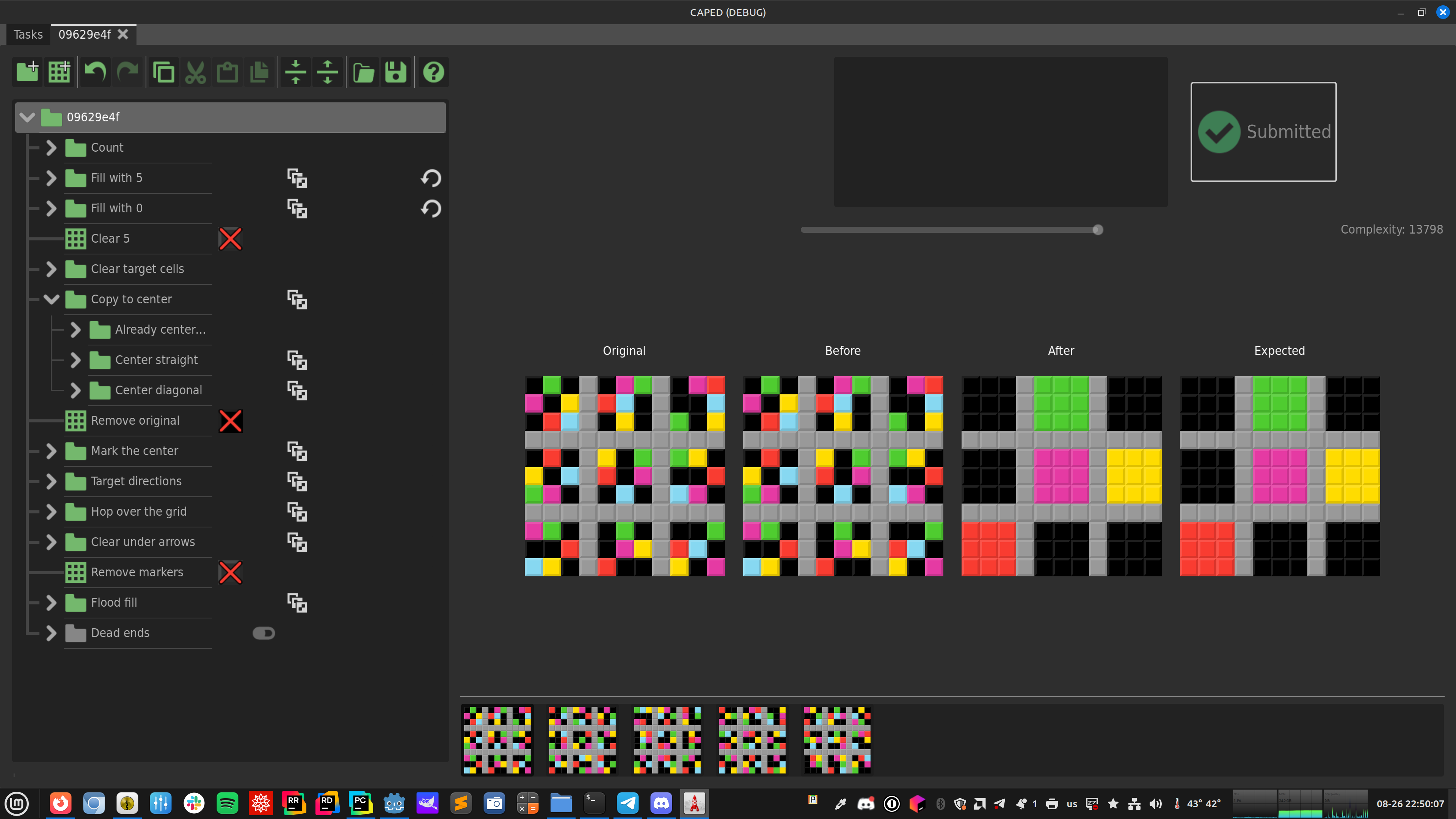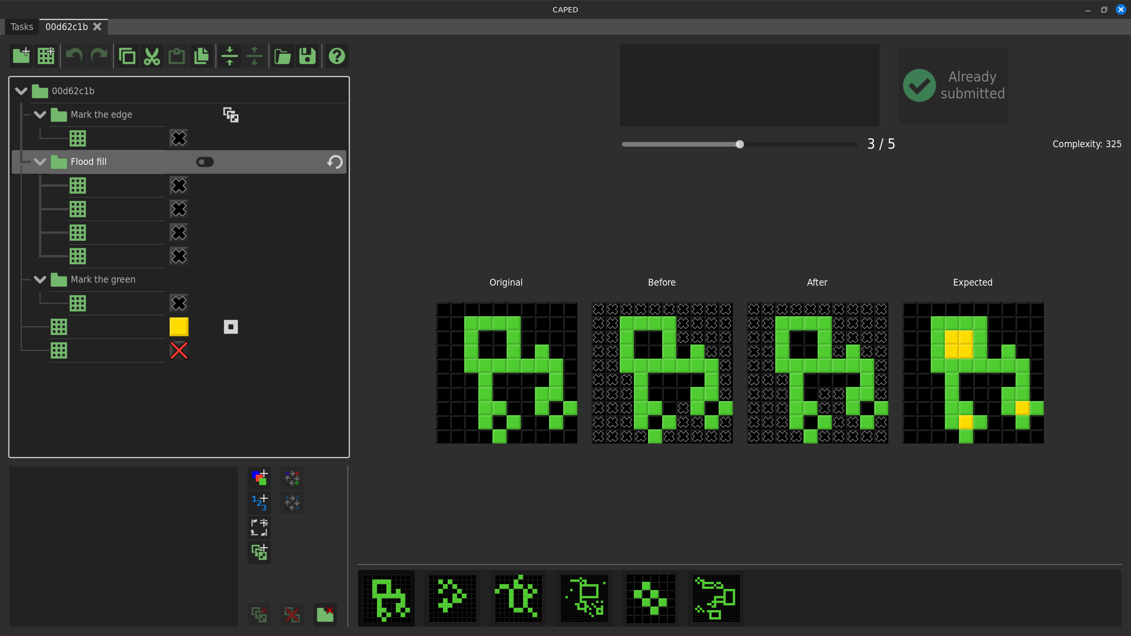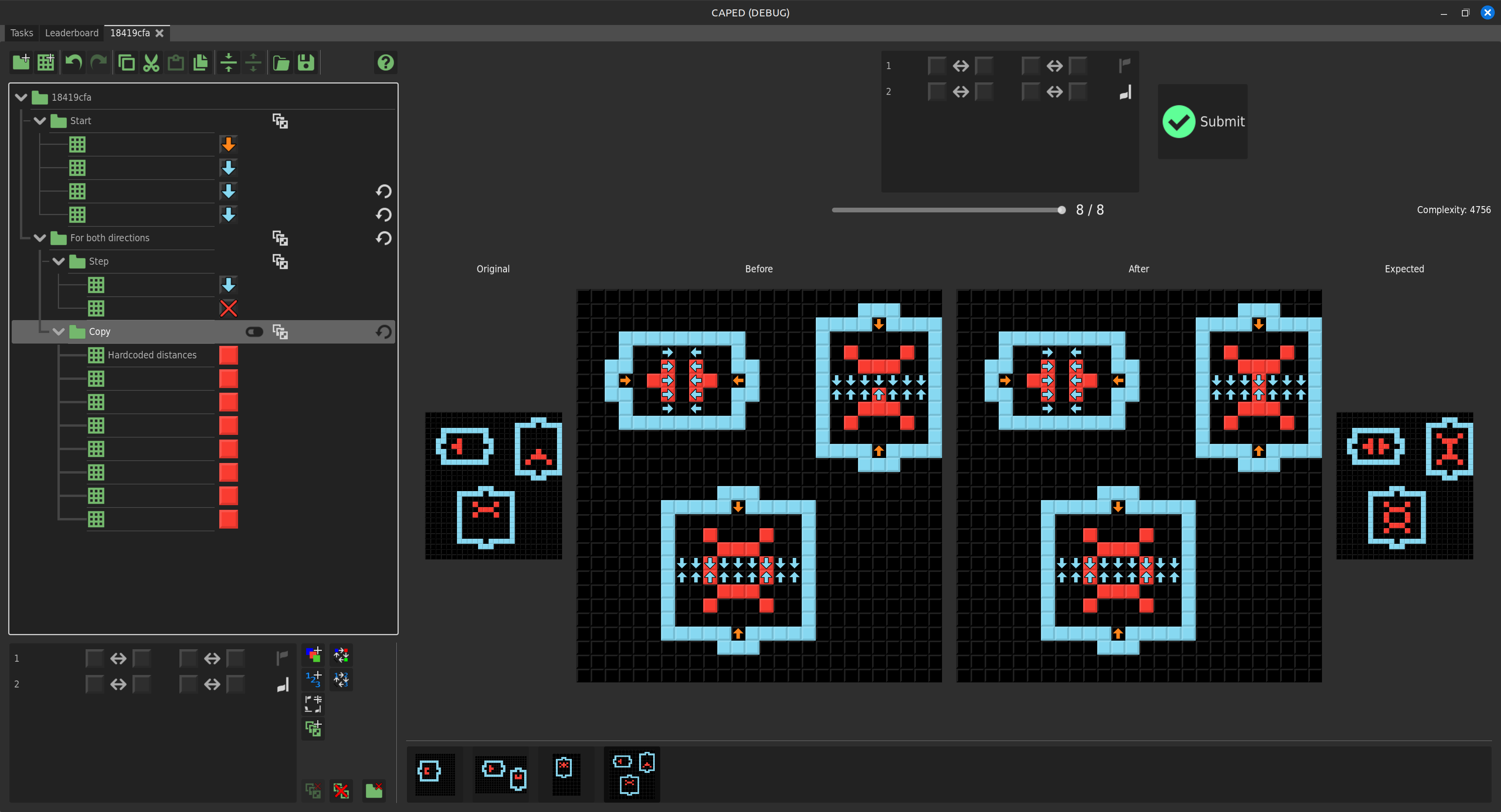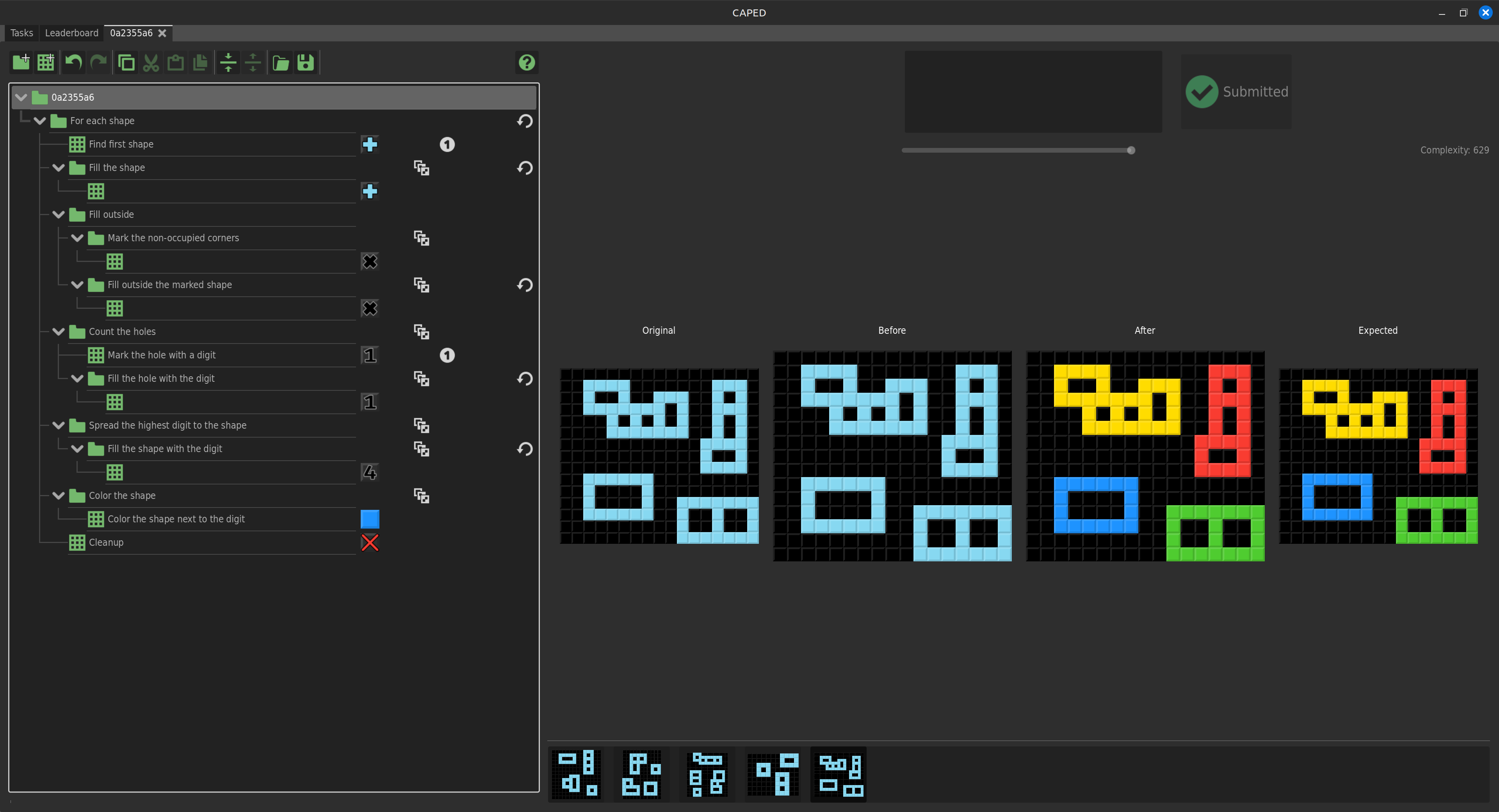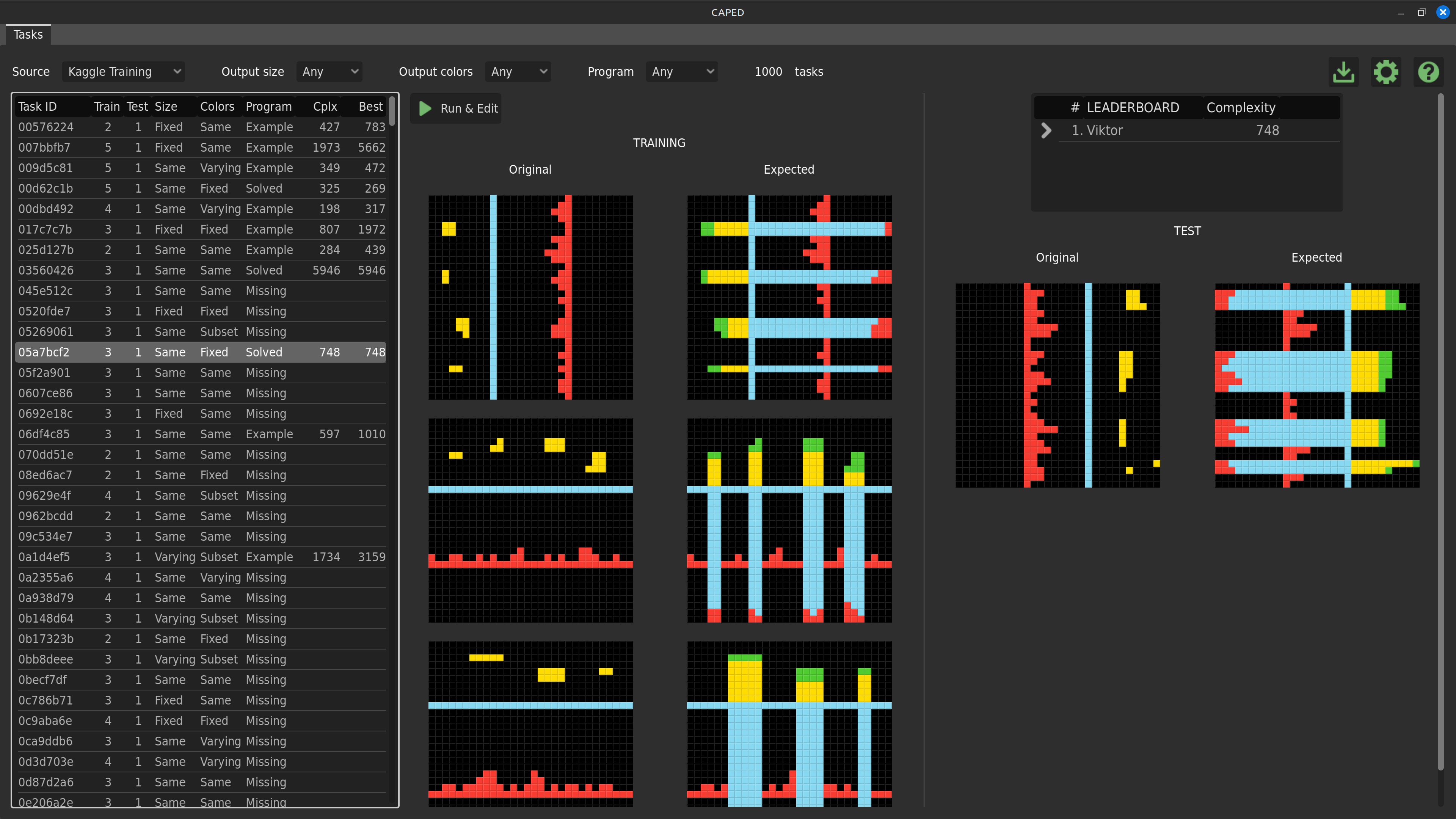 CAPED is a puzzle game and a research tool for the manual design and debugging of Cellular Automata (CA) programs solving the tasks from the ARC AGI 2 challenge.